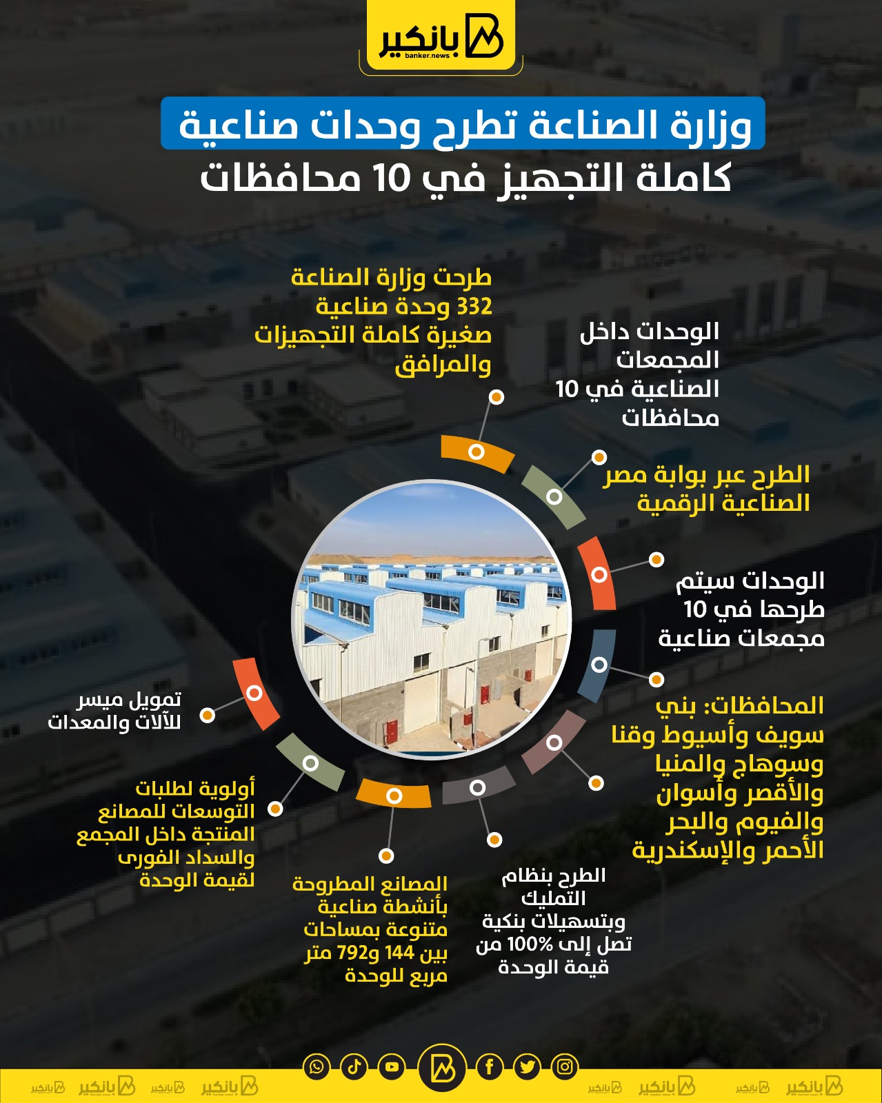 وزارة الصناعة تطرح وحدات صناعية كاملة التجهيز في 10 محافظات | إنفوجراف