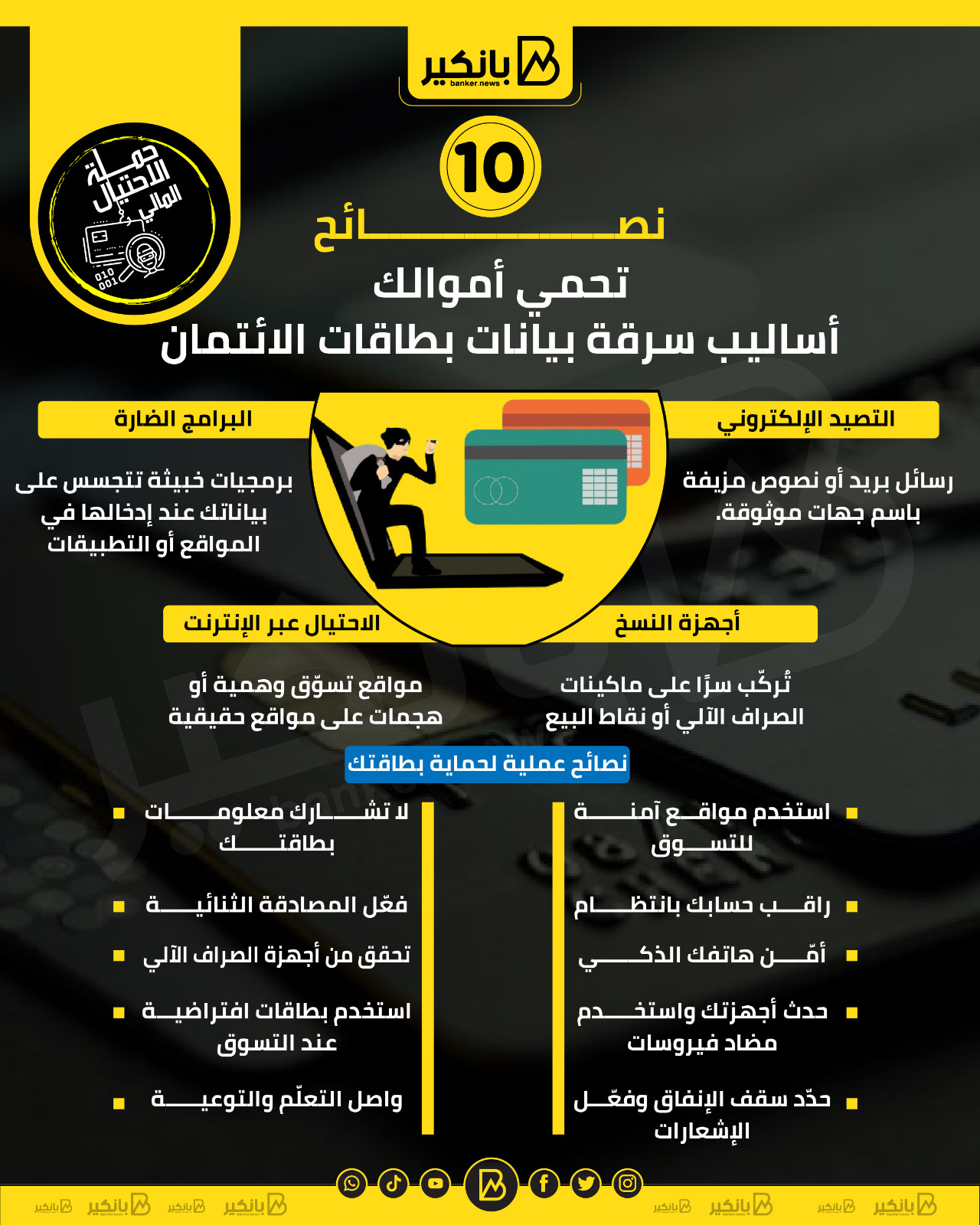 10 نصائح تحمي أموالك.. أساليب سرقة بيانات بطاقات الائتمان | إنفوجراف