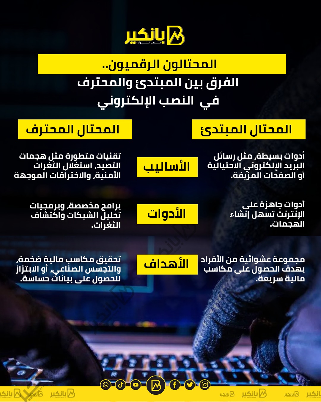المحتالون الرقميون.. الفرق بين المبتدئ والمحترف في النصب الإلكتروني | إنفوجراف