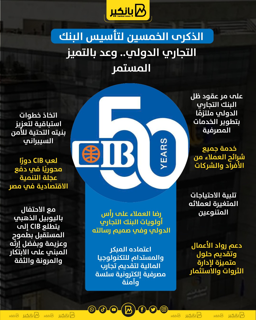 أطلق CIB حملته الدعائية تحت شعار "50 عام من التميز"، مسلطا الضوء على مسيرة البنك منذ تأسيسه، ومراحل تطوره ليصبح أحد أكبر البنوك الخاصة في مصر.
