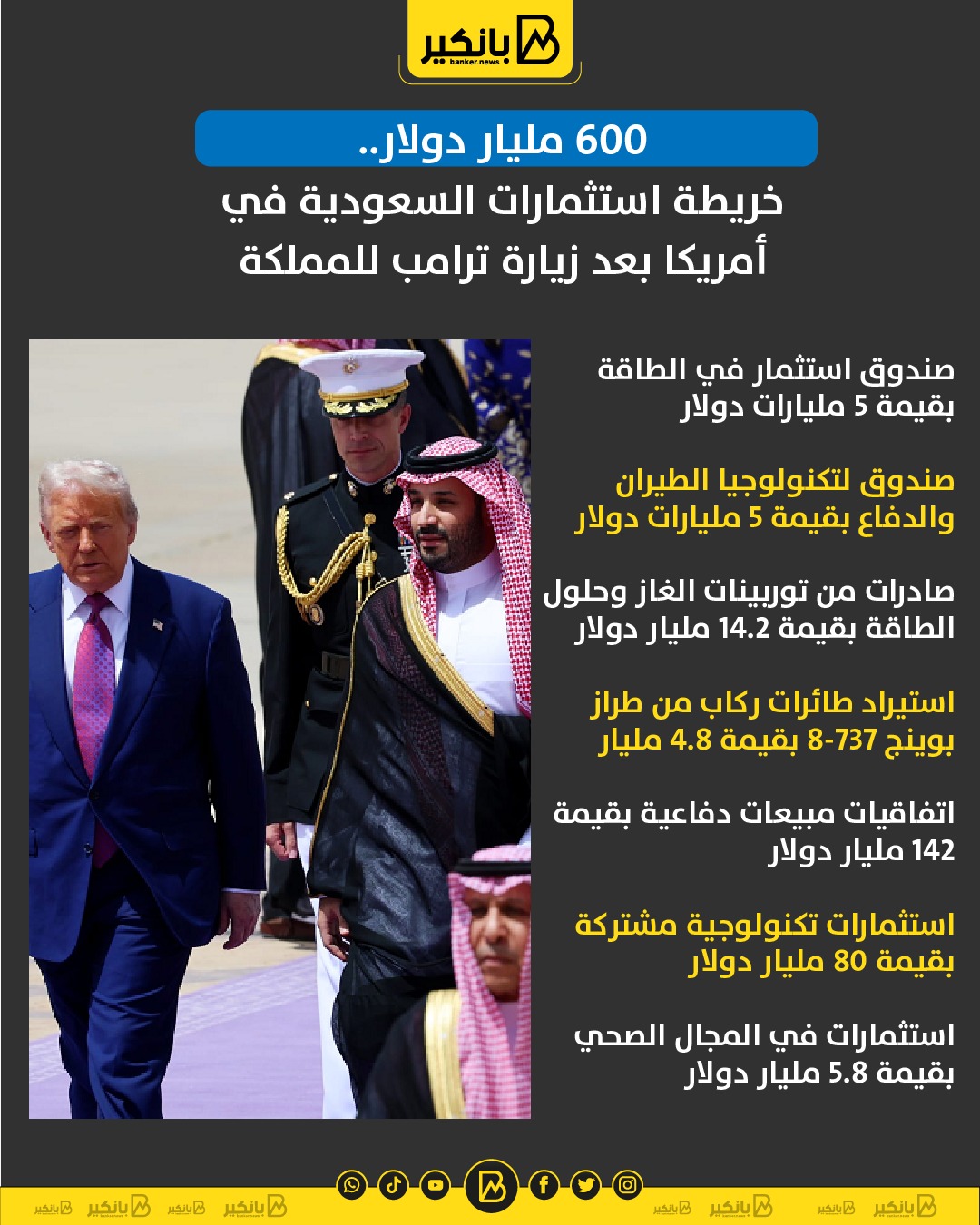 600 مليار دولار.. خريطة استثمارات السعودية في أمريكا بعد زيارة ترامب للمملكة | إنفوجراف