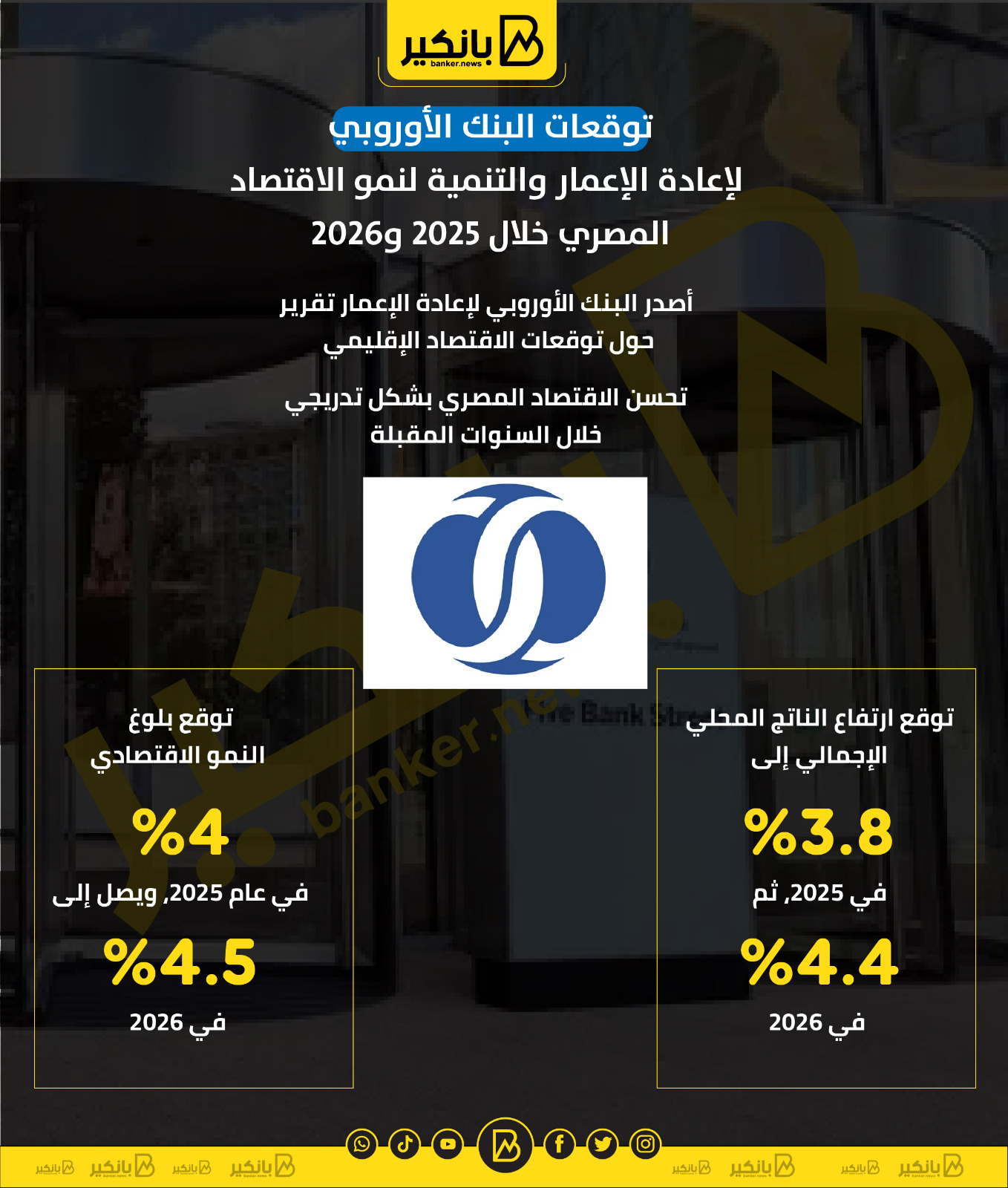 توقعات البنك الأوروبي لإعادة الإعمار والتنمية لنمو الاقتصاد المصري خلال 2025 و2026