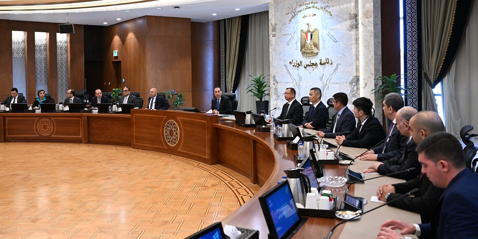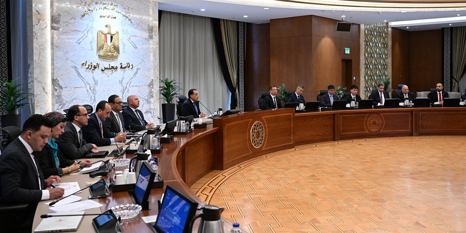 اجتمع اليوم الدكتور مصطفى مدبولي، رئيس مجلس الوزراء، مع داي ليونج، رئيس شركة "جيتور" العالمية للسيارات، وذلك بحضور الفريق مهندس/ كامل الوزير، نائب رئيس مجلس الوزراء للتنمية الصناعية، وزير الصناعة والنقل، ومحمد القصراوي، رئيس مجموعة القصراوي للسيارات؛ الوكيل الحصرى للعلامة "جيتور" في مصر، وعددٍ من قيادات شركة جيتور ومجموعة القصراوي.