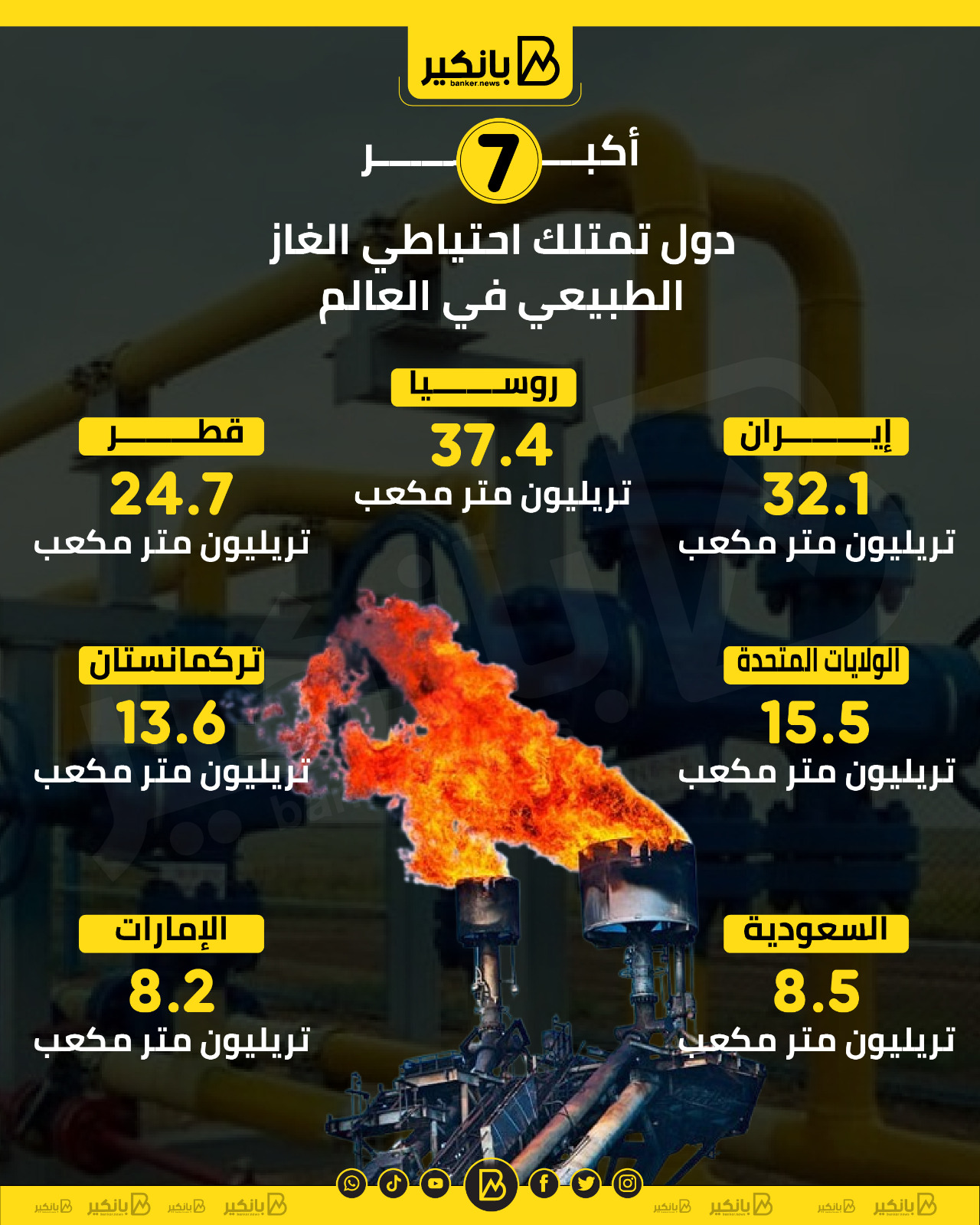 أكبر 7 دول تمتلك احتياطي الغاز الطبيعي في العالم | إنفوجراف