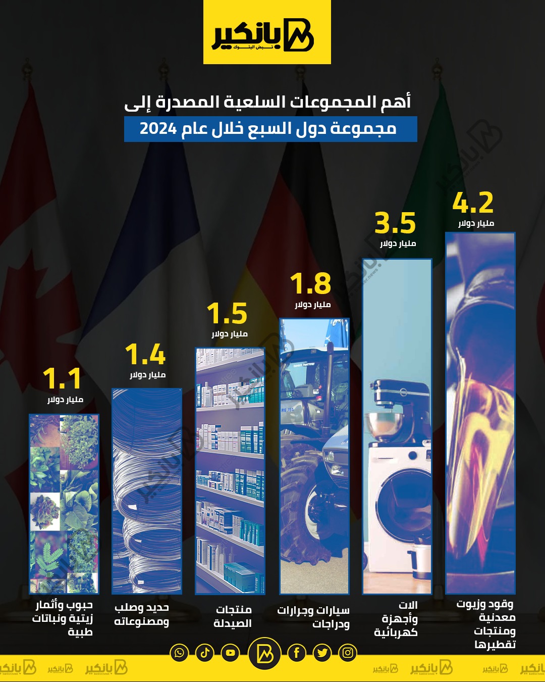 أهم المجموعات السلعية المصدرة إلى مجموعة دول السبع خلال عام 2024 | إنفوجراف