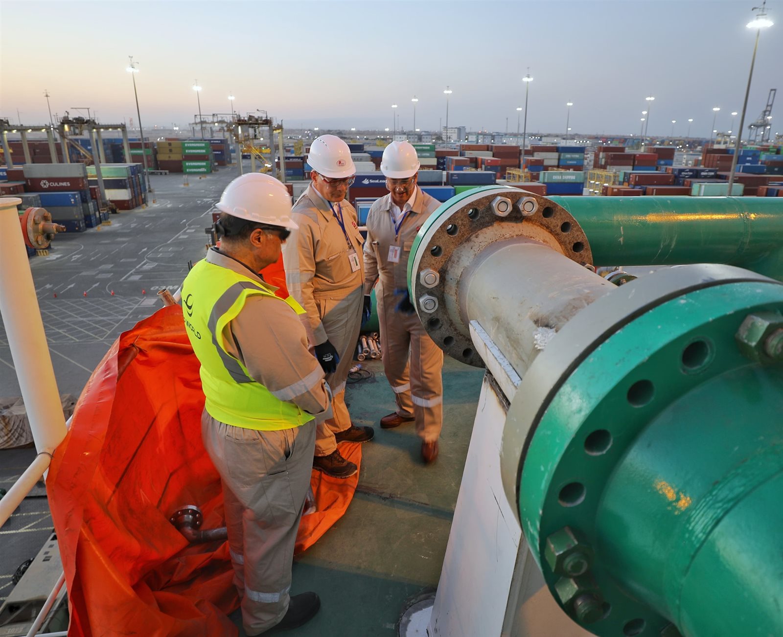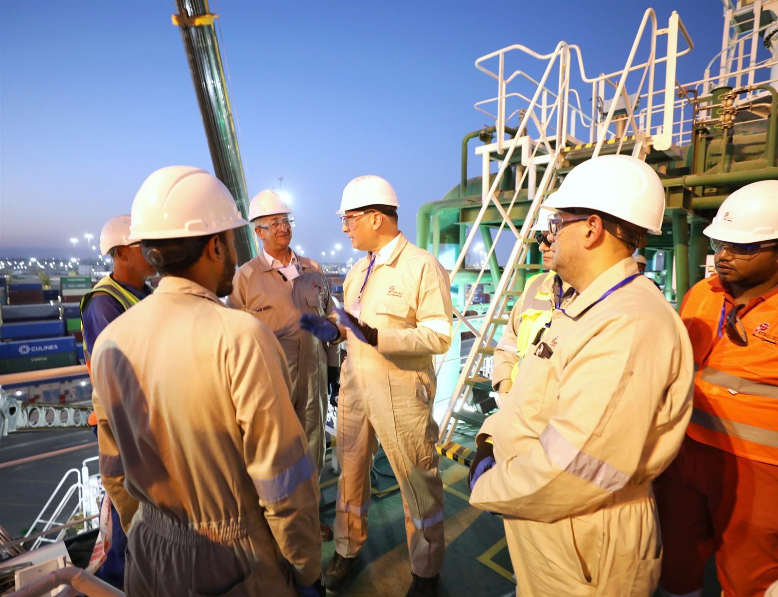 وخلال الجولة ، اطلع الوزير على موقف تقدم الأعمال الفنية والتعديلات الخاصة بالسفينة، مؤكدًا أهمية الالتزام بالجداول الزمنية المقررة، ووجّه بالإسراع في إنهاء التجهيزات الفنية اللازمة، تمهيدًا لربط وحدة التغييز الجديدة بالميناء خلال الأيام القليلة المقبلة، بما يدعم قدرات المنظومة الوطنية للغاز الطبيعي المسال، ويعزز تأمين الوقود بشكل آمن ومستدام.