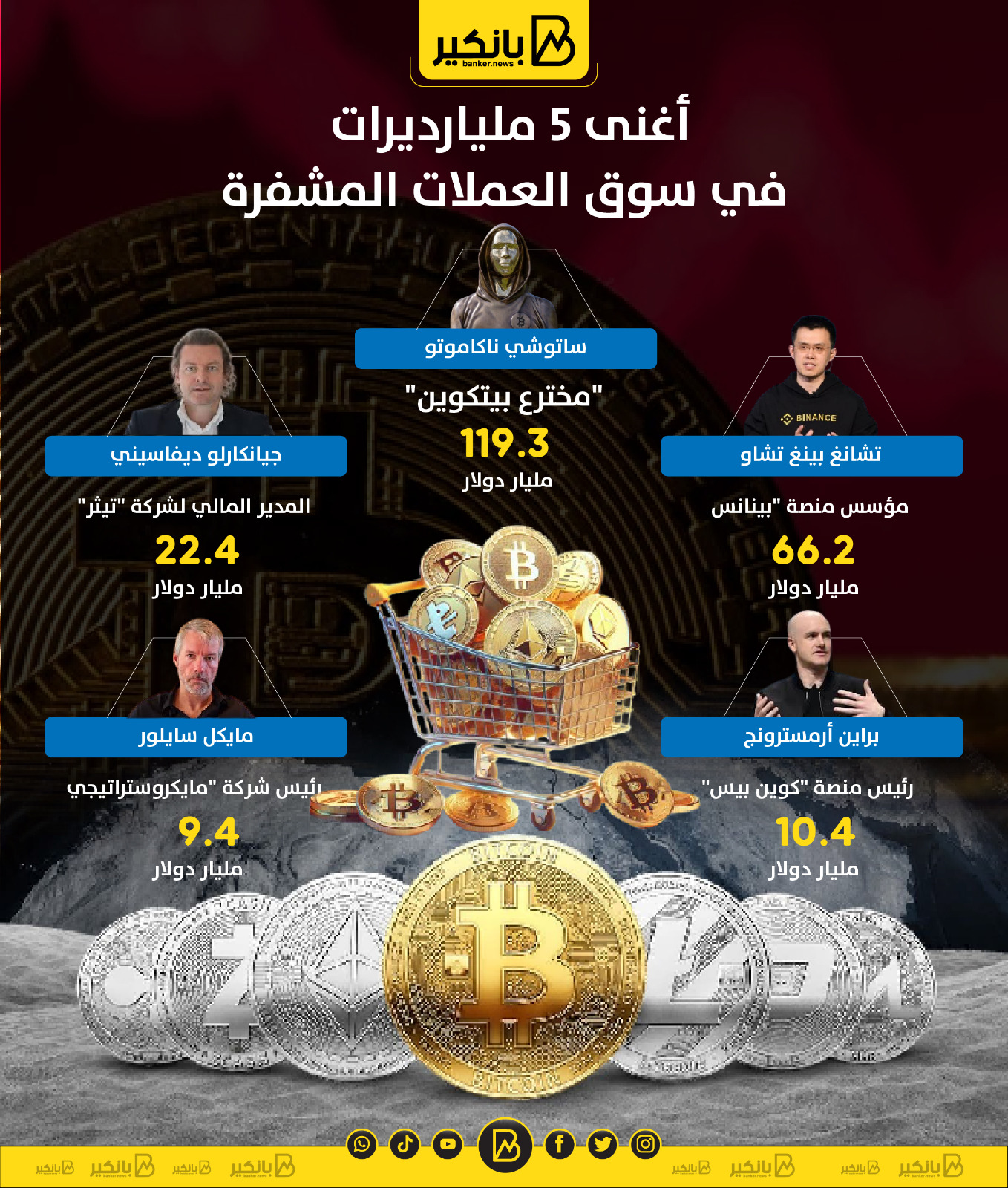 أغنى 5 مليارديرات في سوق العملات المشفرة | إنفوجراف