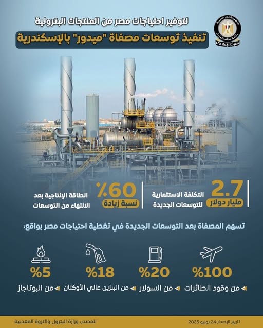 في إطار جهود الدولة لتعزيز الإنتاج المحلي من المنتجات البترولية وتقليل الاعتماد على الاستيراد، يبرز مشروع توسعات مصفاة ميدور بالإسكندرية كأحد المشروعات الاستراتيجية الكبرى التي تهدف إلى رفع الطاقة التكريرية وتحقيق الاكتفاء الذاتي من المنتجات البترولية، مع الالتزام بأعلى معايير الجودة لتلبية احتياجات السوق المحلي.