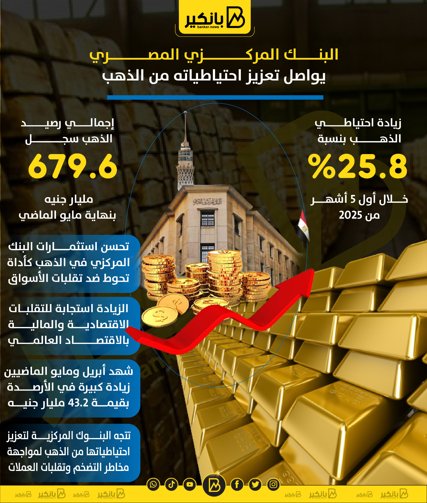 • زيادة احتياطي الذهب بنسبة 25.8% خلال أول 5 أشهر من 2025