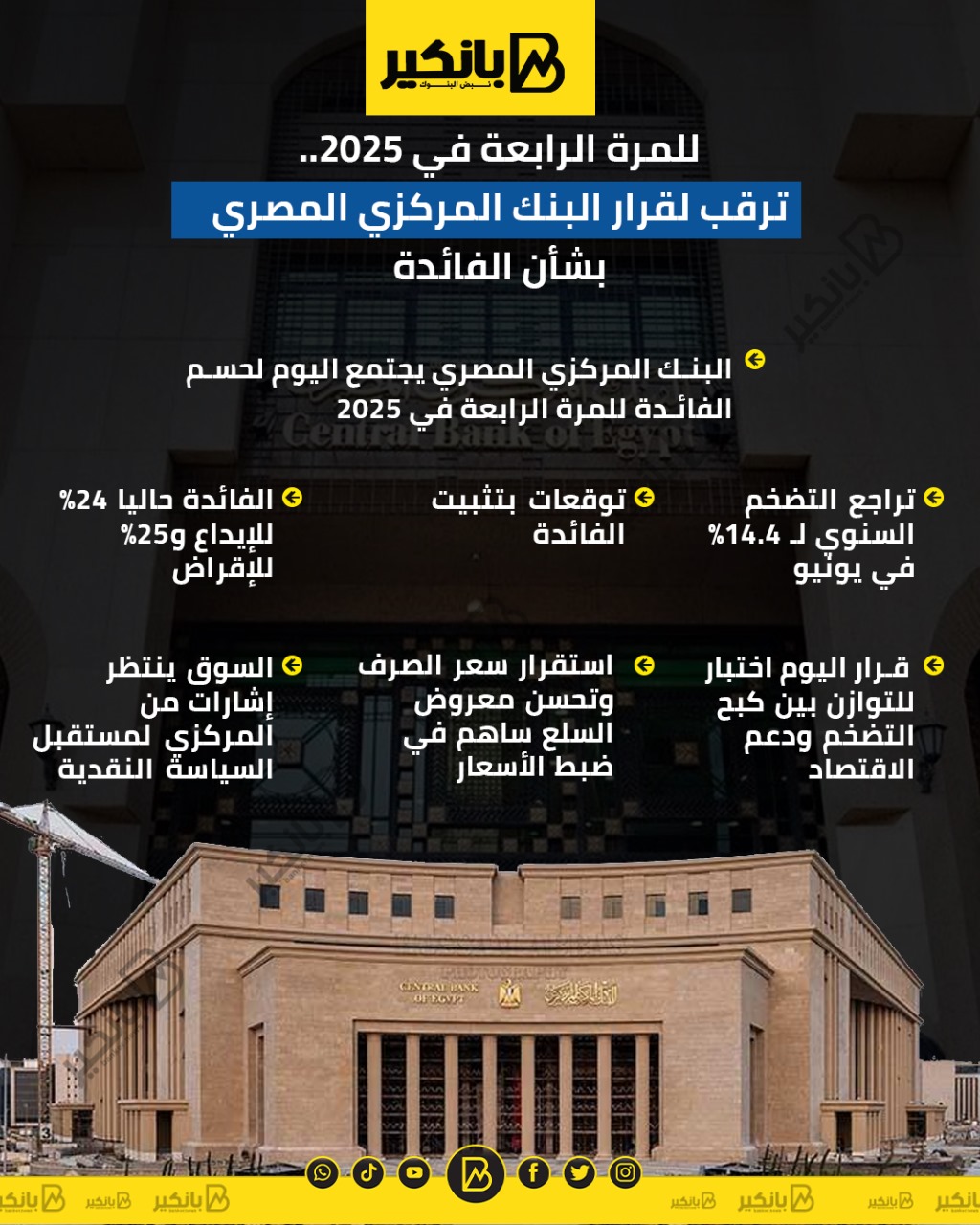 • البنك المركزي المصري يجتمع اليوم لحسم الفائدة للمرة الرابعة في 2025