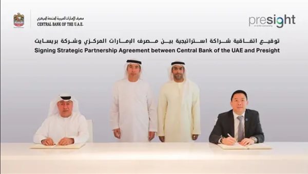 ووقّع الاتفاقية كلٌّ من إبراهيم عبيد الزعابي، مساعد المحافظ لشؤون السياسة النقدية والاستقرار المالي في مصرف الإمارات العربية المتحدة المركزي، وتوماس براموتيدهام، الرئيس التنفيذي لشركة بريسايت.