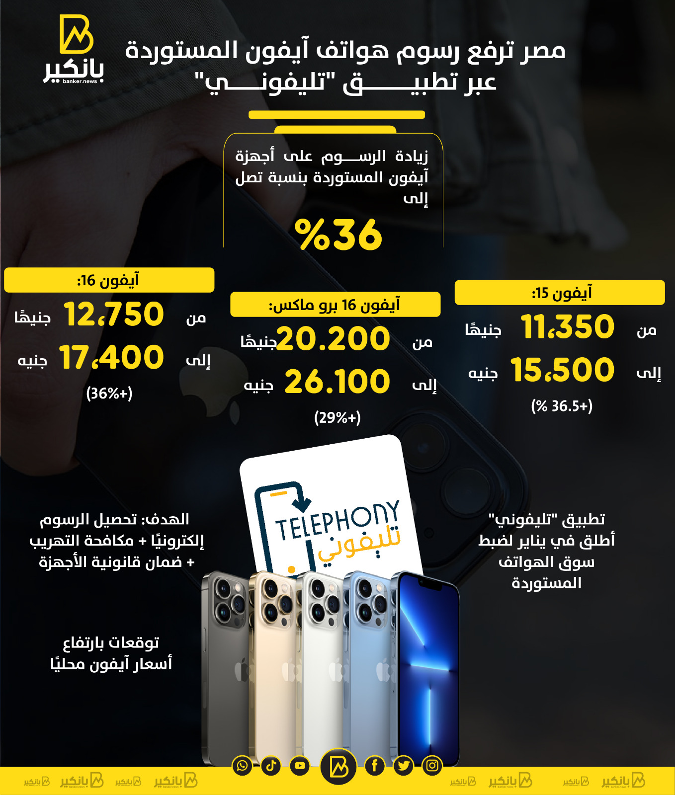 مصر ترفع رسوم هواتف آيفون المستوردة عبر تطبيق "تليفوني" | إنفوجراف
