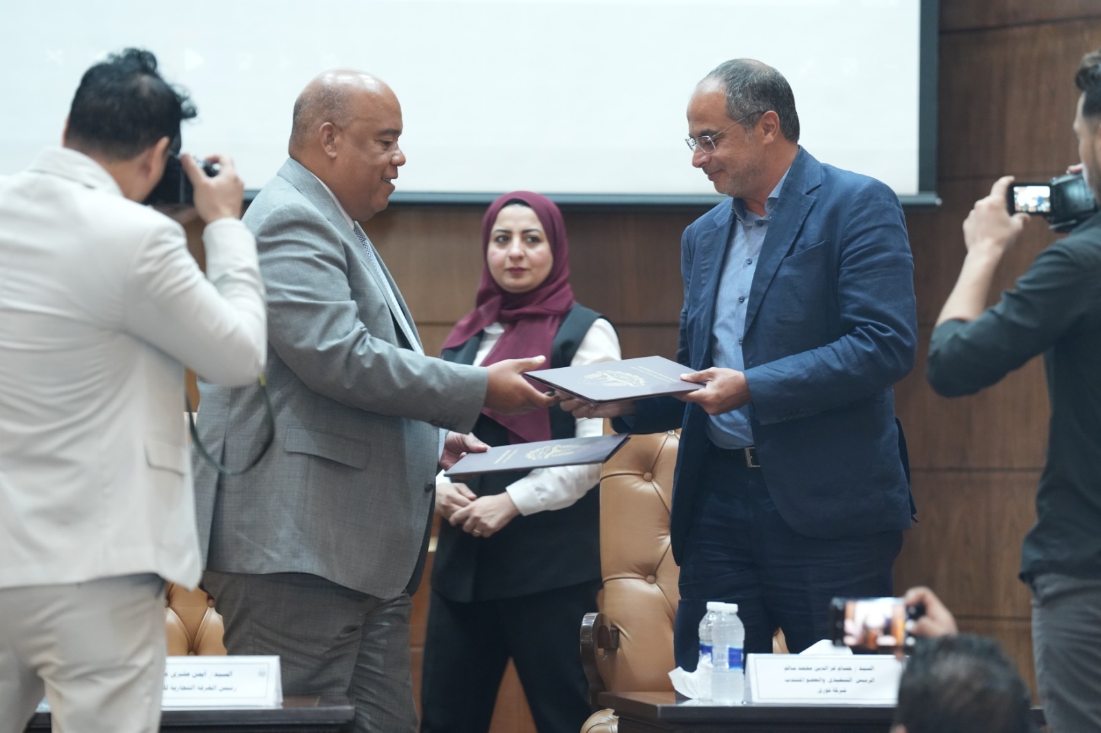 وعلي هامش التوقيع قدم أيمن العشري درع الغرفة التجارية بالقاهرة لـ حسام عز الدين تقديرا لتعاونه مع الغرفة والمجتمع التجاري.