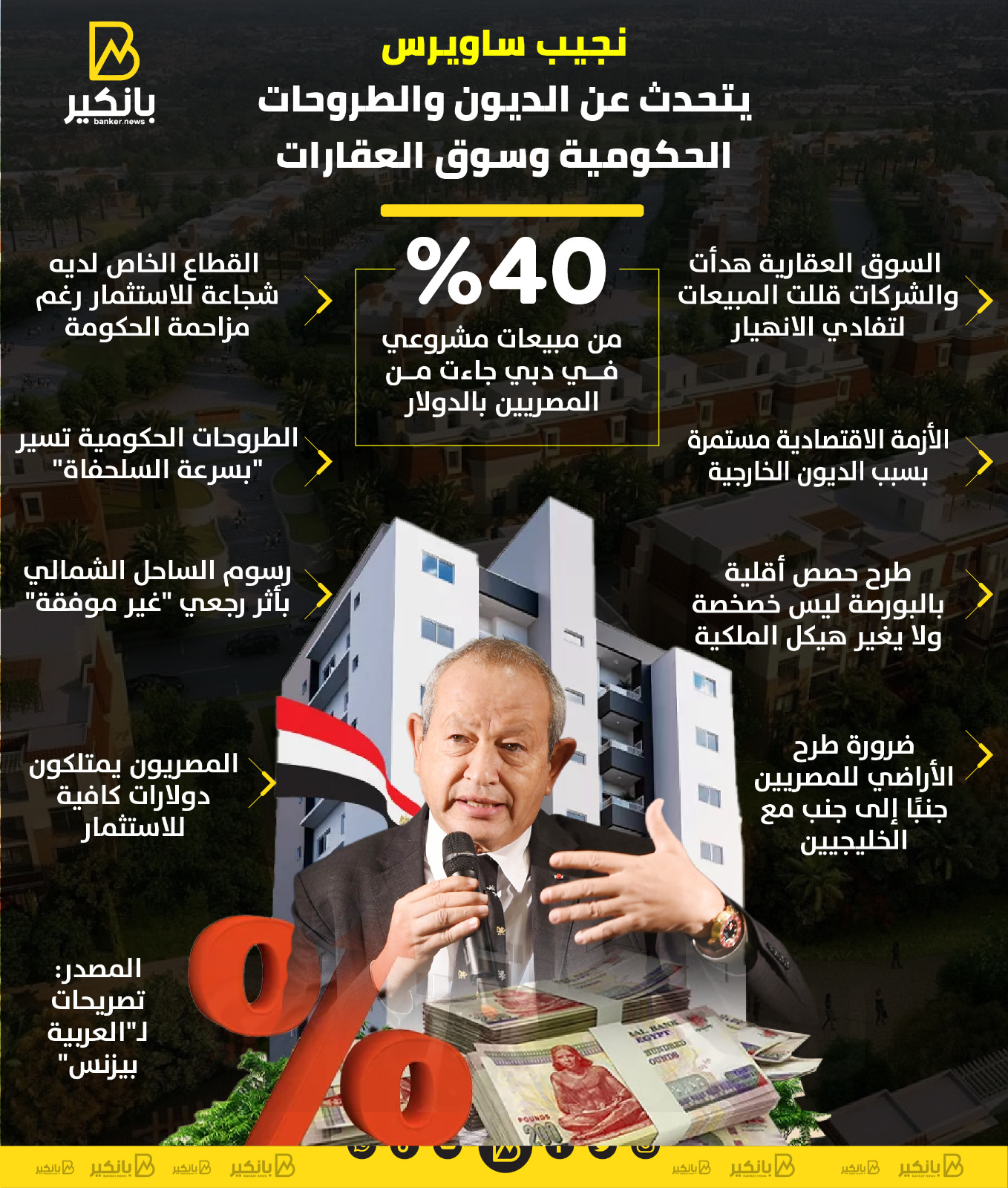 نجيب ساويرس يتحدث عن الديون والطروحات الحكومية وسوق العقارات | إنفوجراف