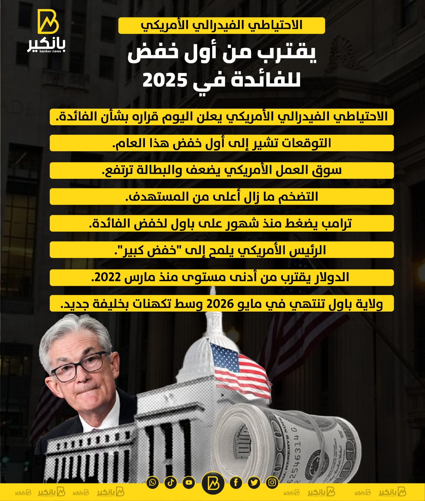 • ولاية باول تنتهي في مايو 2026 وسط تكهنات بخليفة جديد.
