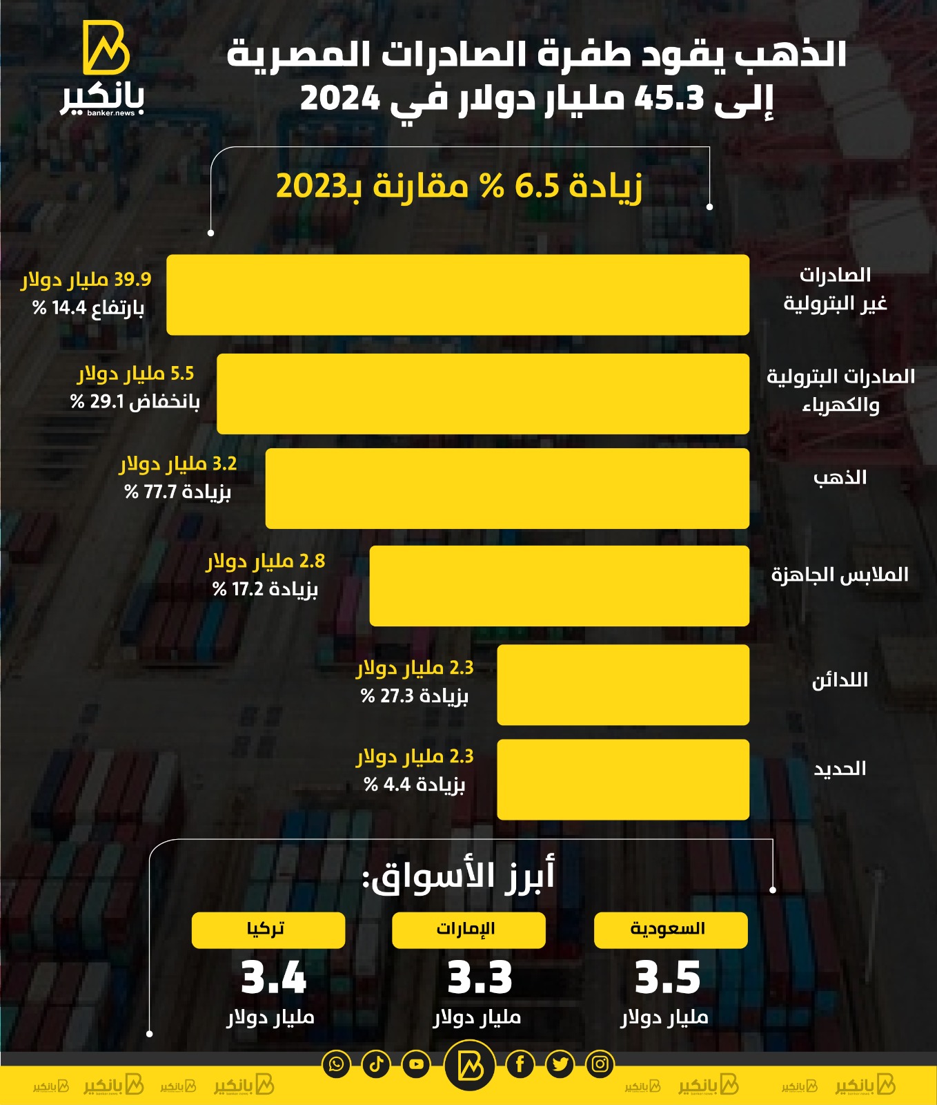 أبرز الأسواق: السعودية 3.5 مليار دولار - الإمارات 3.3 مليار دولار - تركيا 3.4 مليار دولار