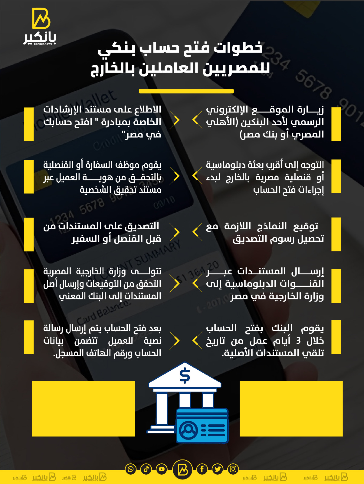 خطوات فتح حساب بنكي للمصريين العاملين بالخارج
