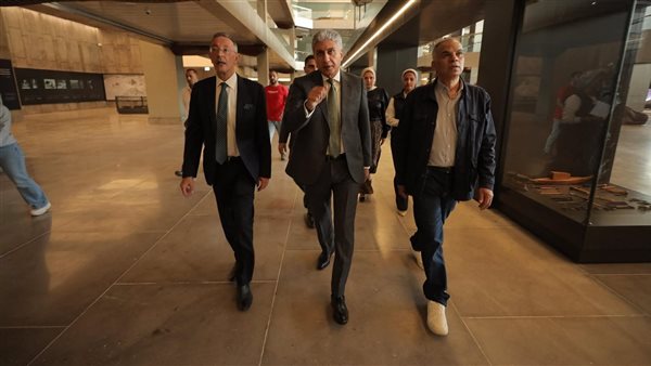 ورافق الوزير خلال هذه الجولات كل من الدكتور أحمد غنيم الرئيس التنفيذي لهيئة المتحف المصري الكبير، والأستاذة رنا جوهر مستشار الوزير للتواصل والعلاقات الخارجية والمُشرف العام على الإدارة العامة للعلاقات الدولية والاتفاقيات بالوزارة، والدكتور عيسى زيدان مدير عام الترميم ونقل الآثار بالمتحف.
