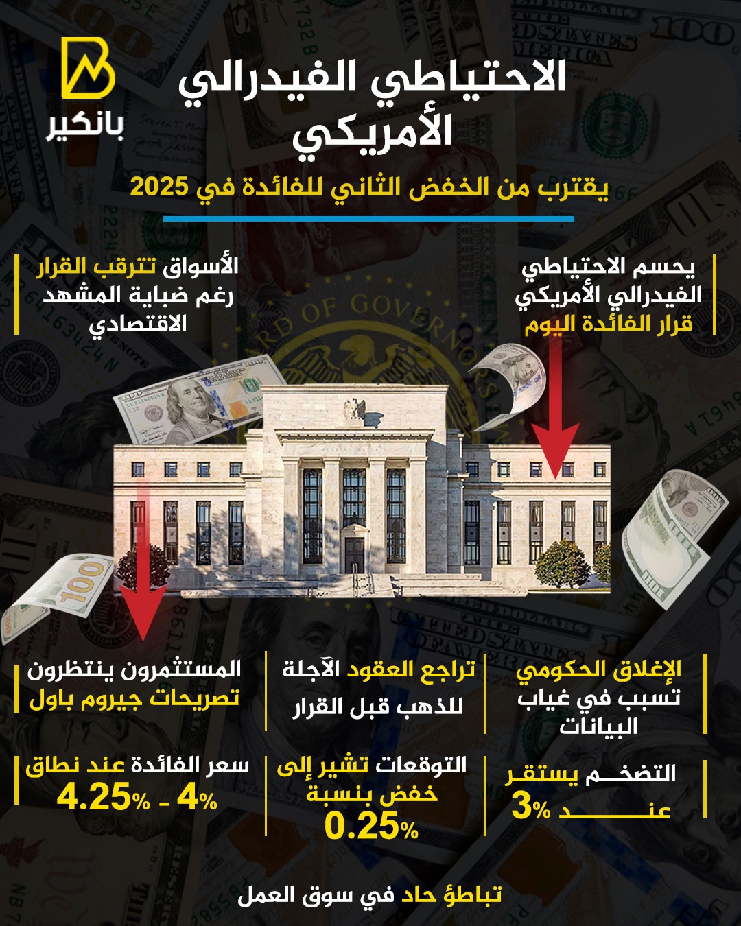 • يحسم الاحتياطي الفيدرالي الأمريكي قرار الفائدة اليوم
