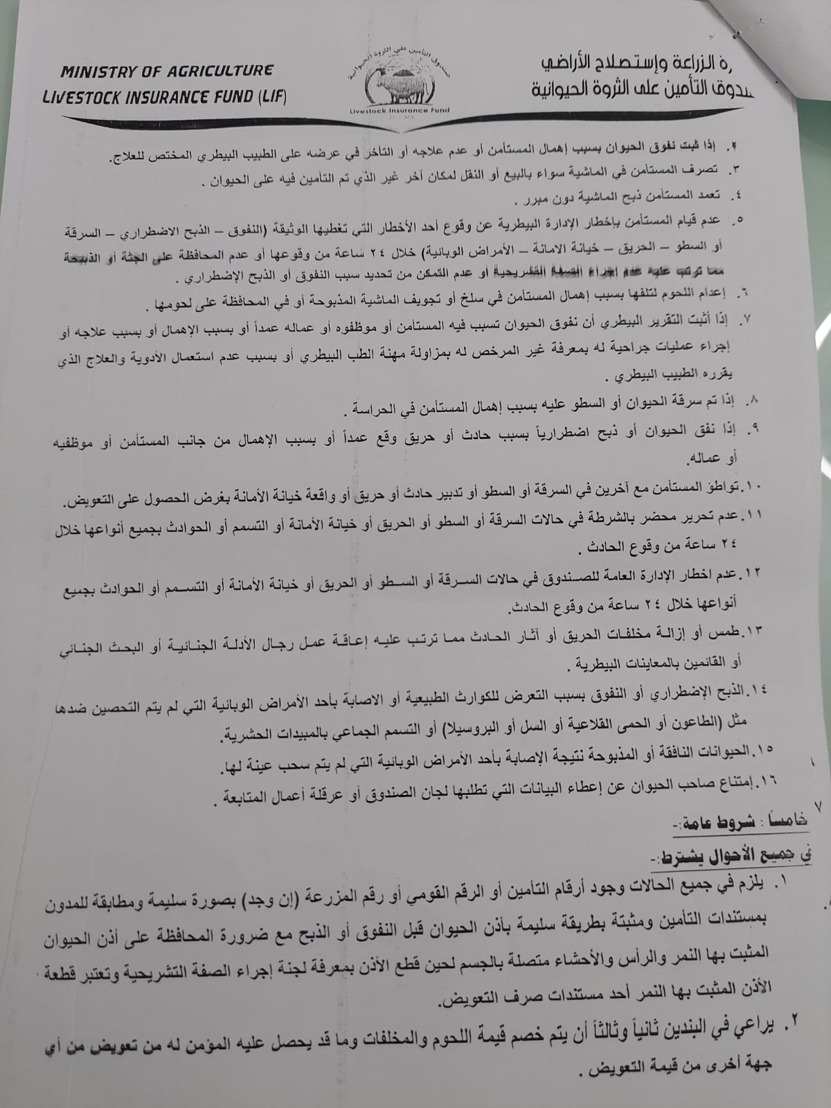 - تسديد تكلفة الأوراق البيانية والتجريح عند المطالبات (للأغنام والماعز).