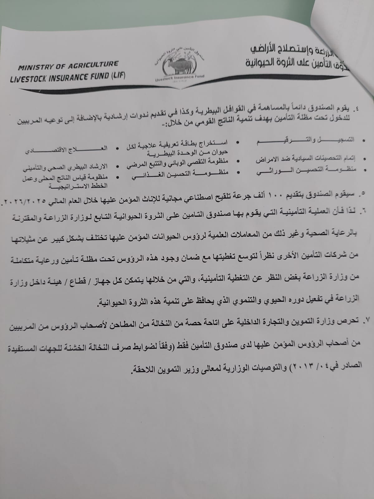 والتأمين على الثروة الحيوانية ليس مجرد وثيقة تعويض، بل هو منظومة متكاملة تجمع بين الحماية المالية والرعاية الصحية والدعم الفني، مما يجعله الخيار الأول والأوحد لكل مربي يرغب في استدامة مشروعه وحماية استثماره في ظل الظروف الاقتصادية الراهنة.