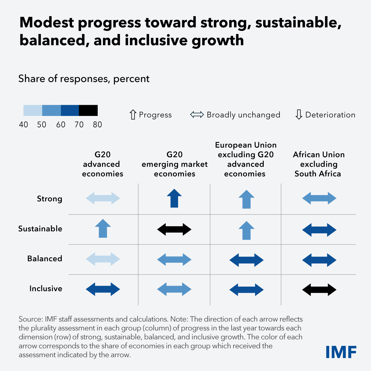 أظهرت دول G20 المتقدمة مؤشرات متواضعة نحو تحقيق النمو القوي، حيث مالت النتائج إلى الاستقرار دون تقدم ملحوظ. ورغم وجود خطوات إيجابية في جانب الاستدامة، إلا أن النمو الشامل والمتوازن لا يزال يواجه عقبات، مع تسجيل العديد من الدول حالة من الجمود الاقتصادي.