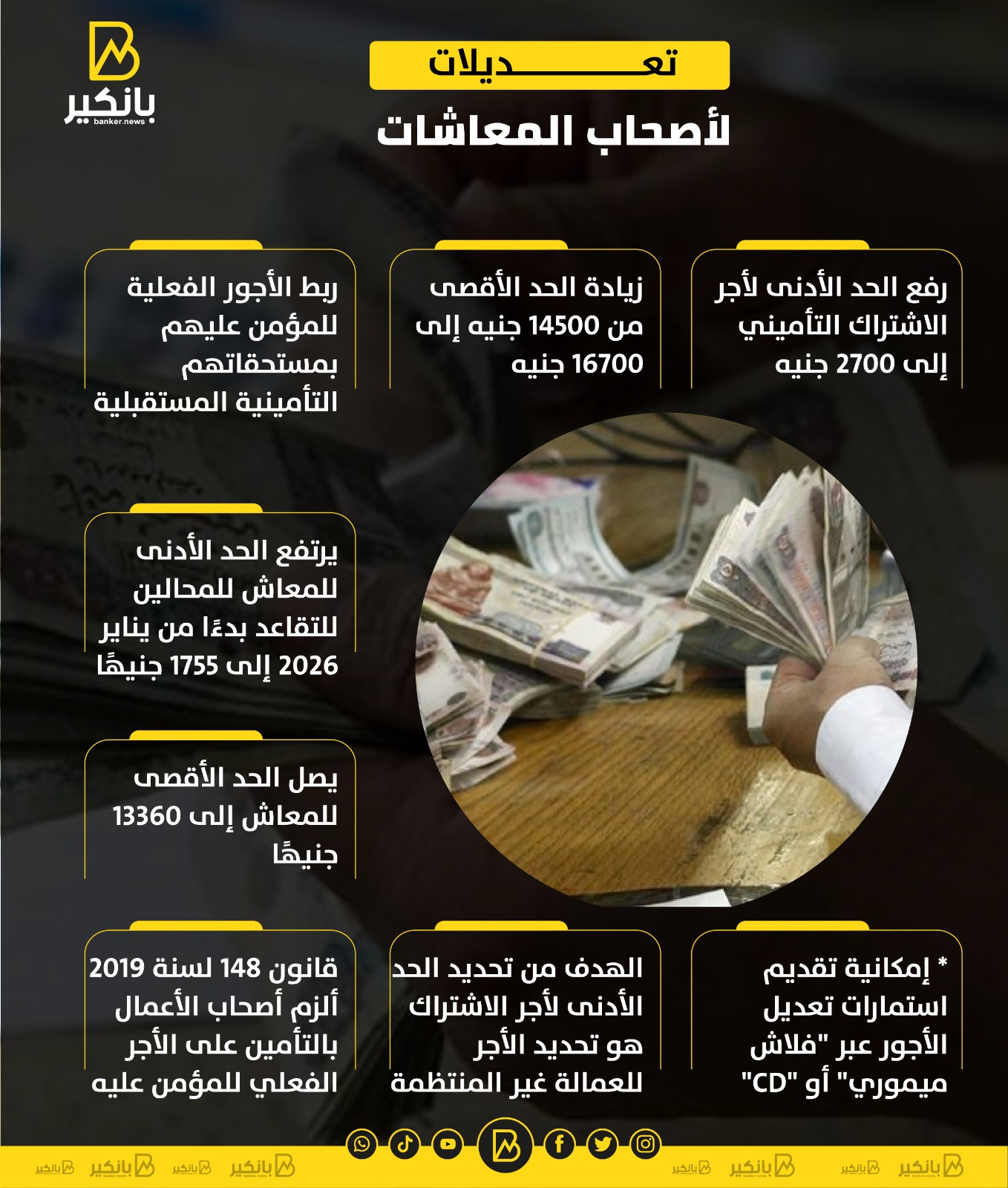 • يصل الحد الأقصى للمعاش إلى 13360 جنيهًا