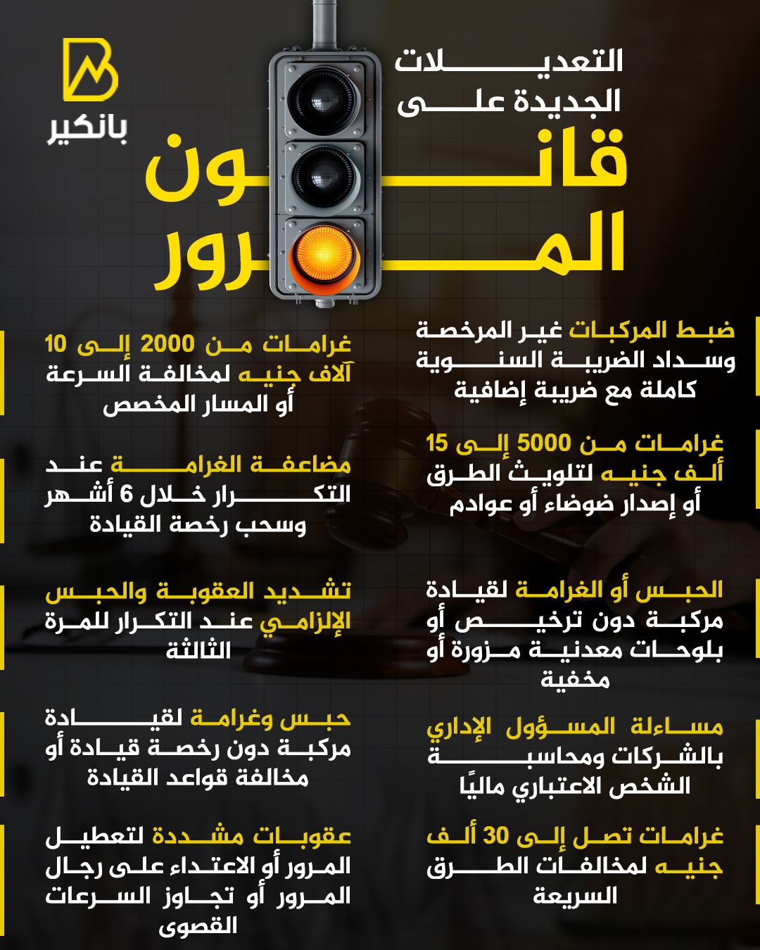 • غرامات من 5000 إلى 15 ألف جنيه لتلويث الطرق أو إصدار ضوضاء أو عوادم