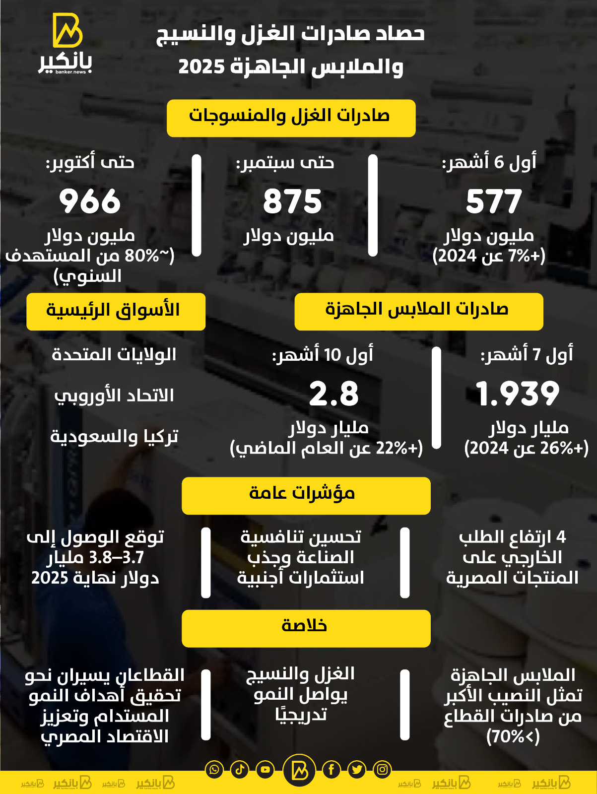 حصاد صادرات الغزل والنسيج والملابس الجاهزة 2025 | إنفوجراف