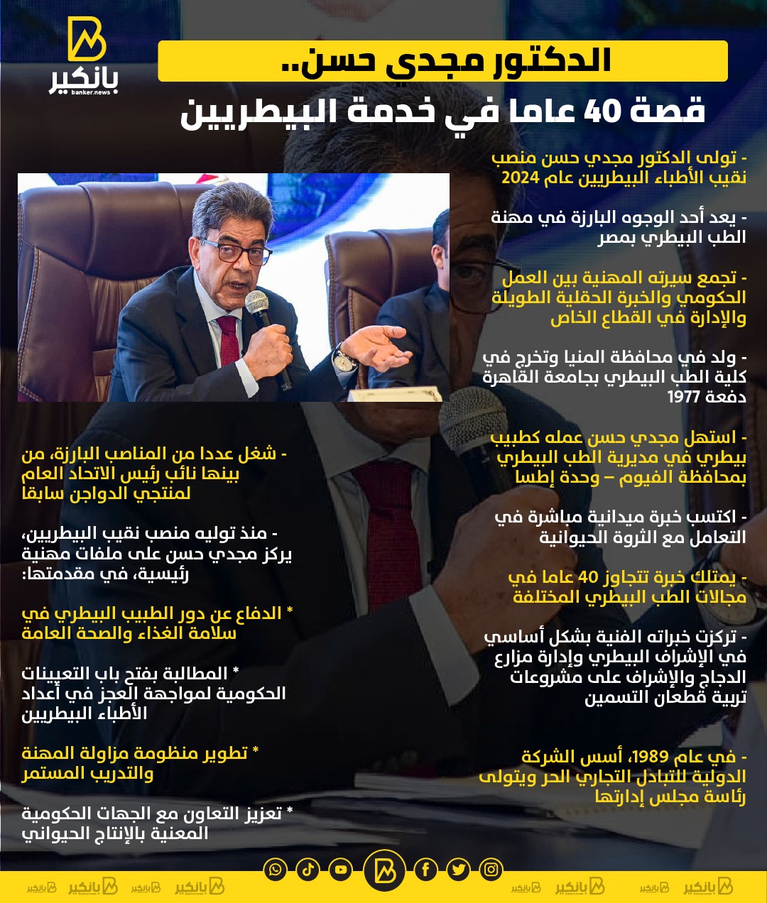 - تولى الدكتور مجدي حسن منصب نقيب الأطباء البيطريين عام 2024