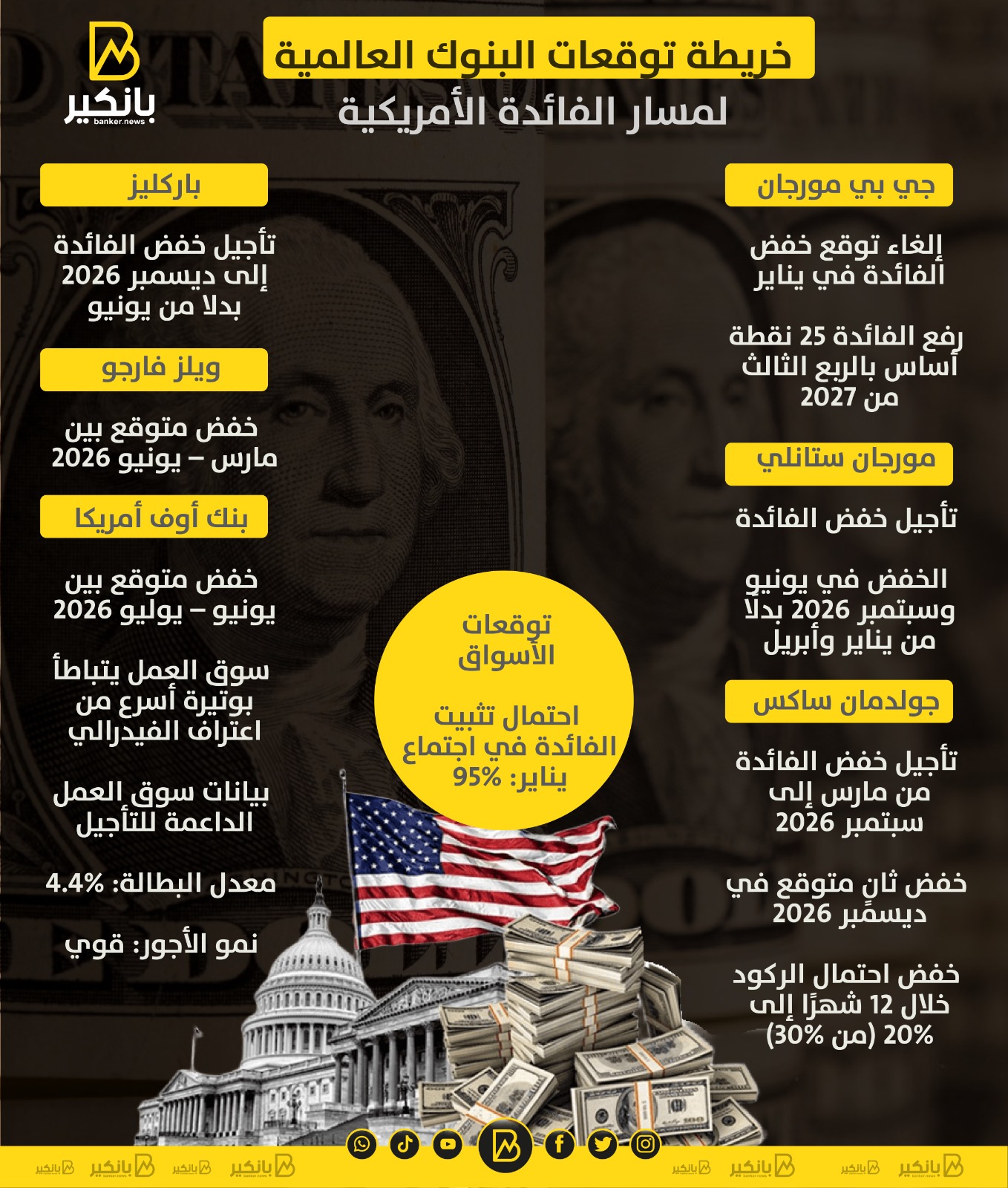 خريطة توقعات البنوك العالمية لمسار الفائدة الأمريكية