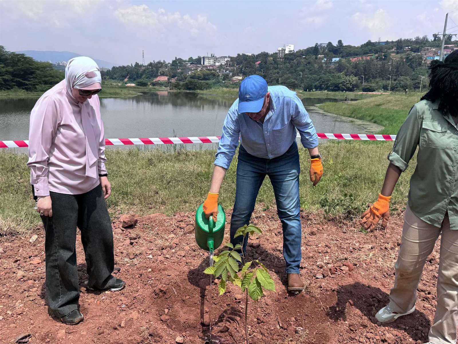وزير الموارد المائية يزرع الأشجار مع المسؤولين والمواطنين ضمن مبادرة وطنية في رواندا