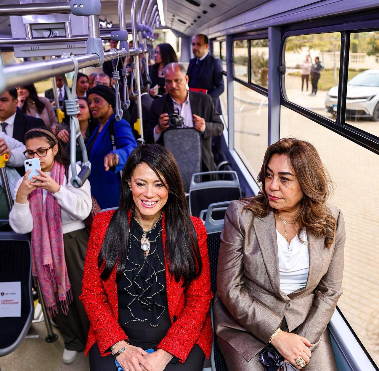 عقب الاجتماع، تفقدت الوزيرتان تجربة تشغيل أحد الأتوبيسات الكهربائية ضمن الدفعة المتعاقد عليها مع شركة "جيوشي"، والتي تأتي في إطار دعم النقل المستدام وتحويل جراج الأميرية إلى جراج ذكي صديق للبيئة، بما يضع المواطن وصحته في قلب عملية التنمية الاقتصادية الشاملة.