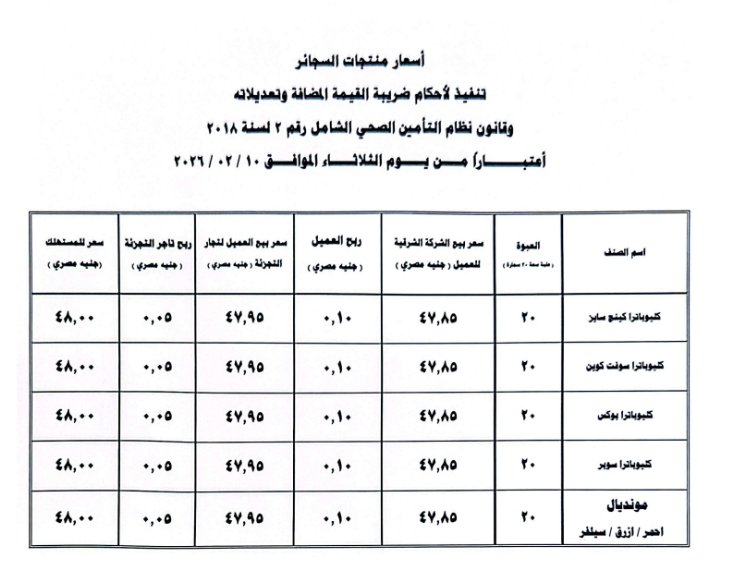 وتعكس هذه الخطوة استمرار الدولة في استخدام الأدوات الضريبية لتنظيم سوق السجائر، وتحقيق توازن بين الموارد المالية المخصصة للإنفاق على الخدمات الصحية، وبين حركة السوق ومتغيراته. كما تؤكد الشركة التزامها الكامل بتطبيق القوانين والقرارات المنظمة، بما يضمن الشفافية واستقرار آليات التسعير.