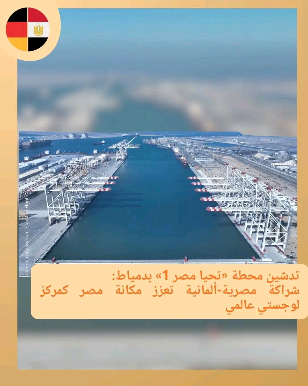 أعلنت السفارة الألمانية بالقاهرة أن تشغيل محطة حاويات دمياط الجديدة «تحيا مصر 1» بدأ رسميًا في 14 فبراير، حيث تم استقبال أول سفينة حاويات، Essen Express التابعة لشركة Hapag-Lloyd AG، على الرصيف الجديد، مؤكدة أن هذا المشروع يمثل نموذجًا للتعاون الوثيق بين مصر وألمانيا.