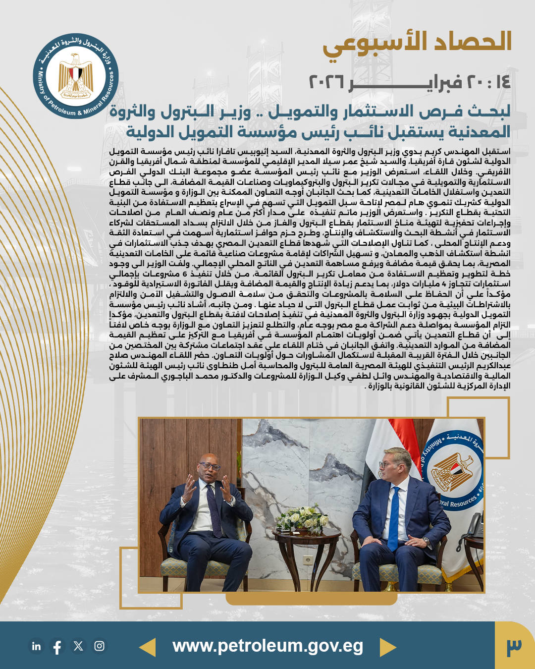 الحصاد الأسبوعي لوزارة البترول يسلط الضوء على التطورات والمشروعات الجديدة