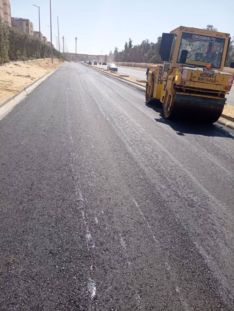 كما بدأت أعمال رش طبقة (MC) بطريق سوق الجملة، تمهيدًا لبدء أعمال الرصف، وذلك ضمن خطة تطوير البنية التحتية، عقب الانتهاء من أعمال التمهيد واستكمال المرافق.