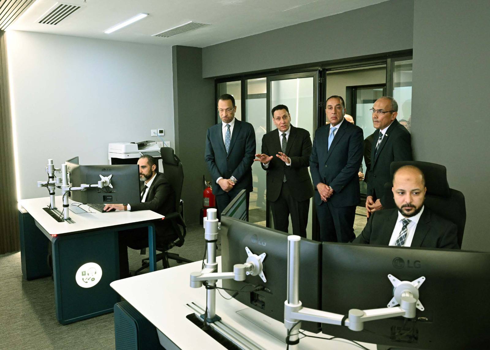 واطلع رئيس الوزراء على المستوى الثاني من الدعم الفني، وهو الجناح الأكثر تخصصاً في حل المشكلات التقنية المعقدة وتأمين البيانات.