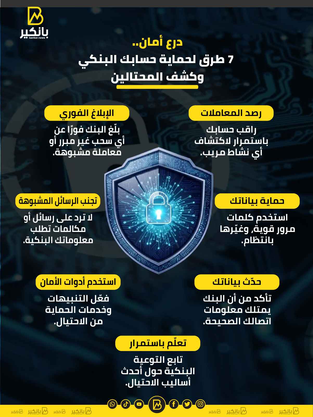 درع أمان.. 7 طرق لحماية حسابك وكشف المحتالين | إنفوجراف