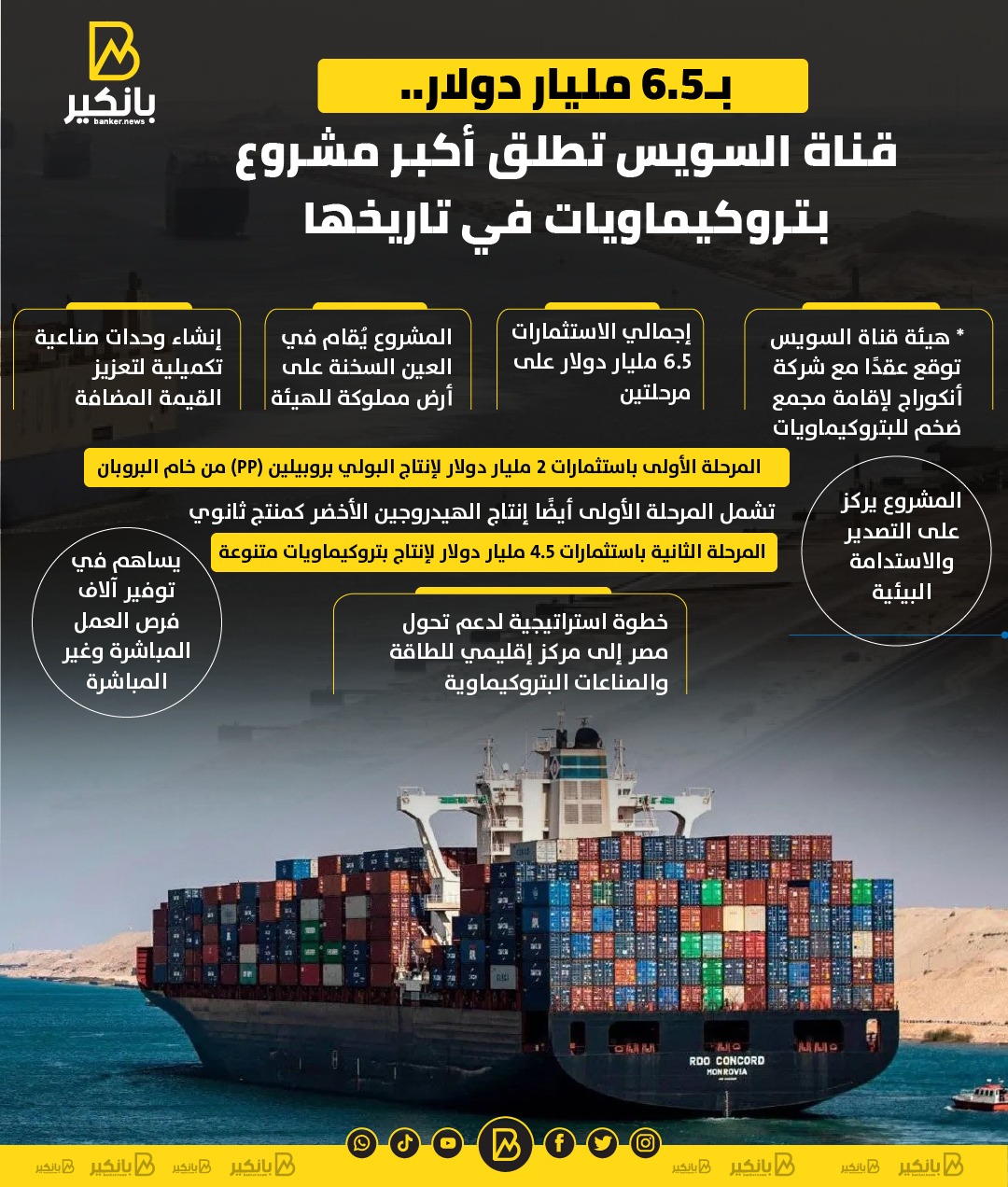 • إجمالي الاستثمارات 6.5 مليار دولار على مرحلتين