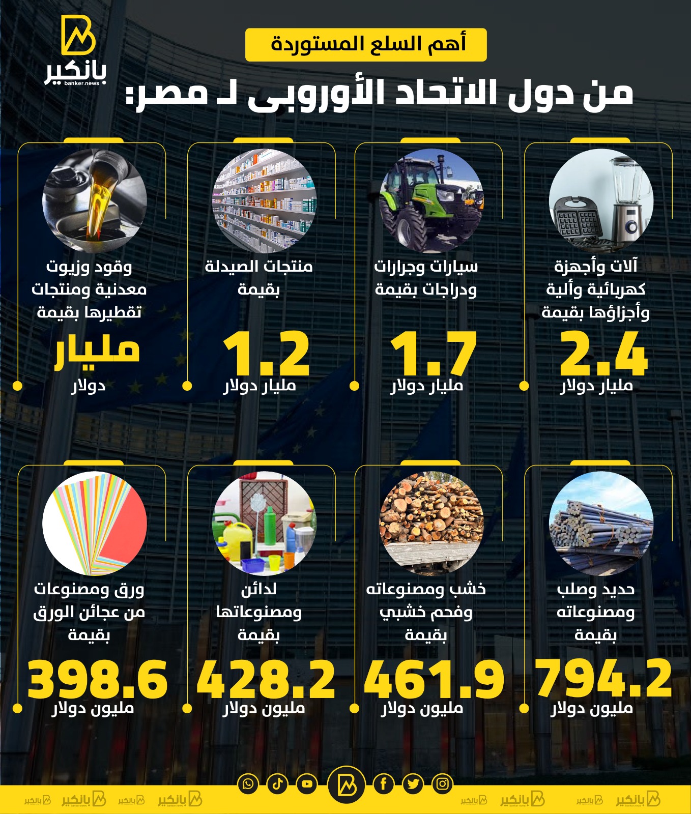 أهم السلع المستوردة من دول الاتحاد الأوروبى لـ مصر | إنفوجراف