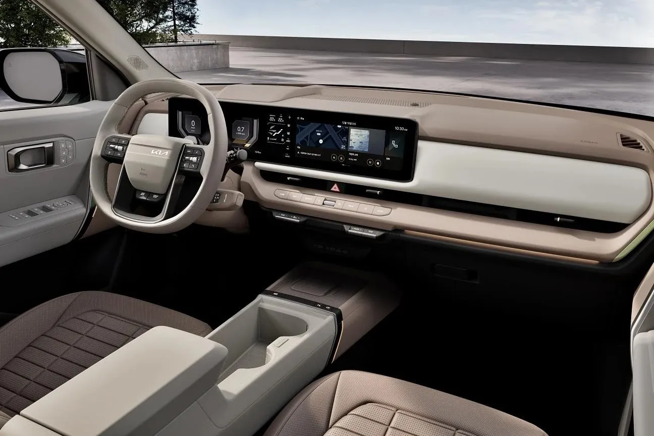 أما التصميم الخارجي، فاستلهم كثيرًا من سيارات كيا الكهربائية EV9 وEV5، مع شبك أمامي عريض ومستطيل، وتوقيع ضوئي فريد، وخطوط قطرية بارزة على الجانبين، ومصابيح خلفية تمتد بعرض السيارة لتعزيز الطابع الرياضي والثبات البصري.