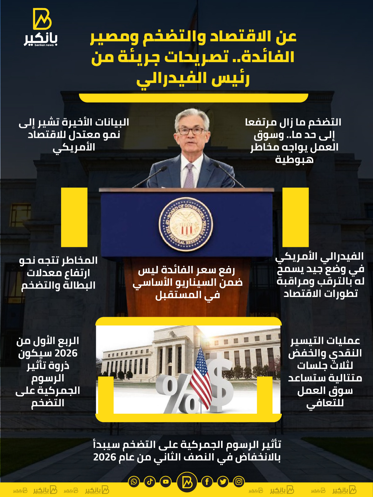 عن الاقتصاد والتضخم ومصير الفائدة.. تصريحات جريئة من رئيس الاحتياطي الفيدرالي