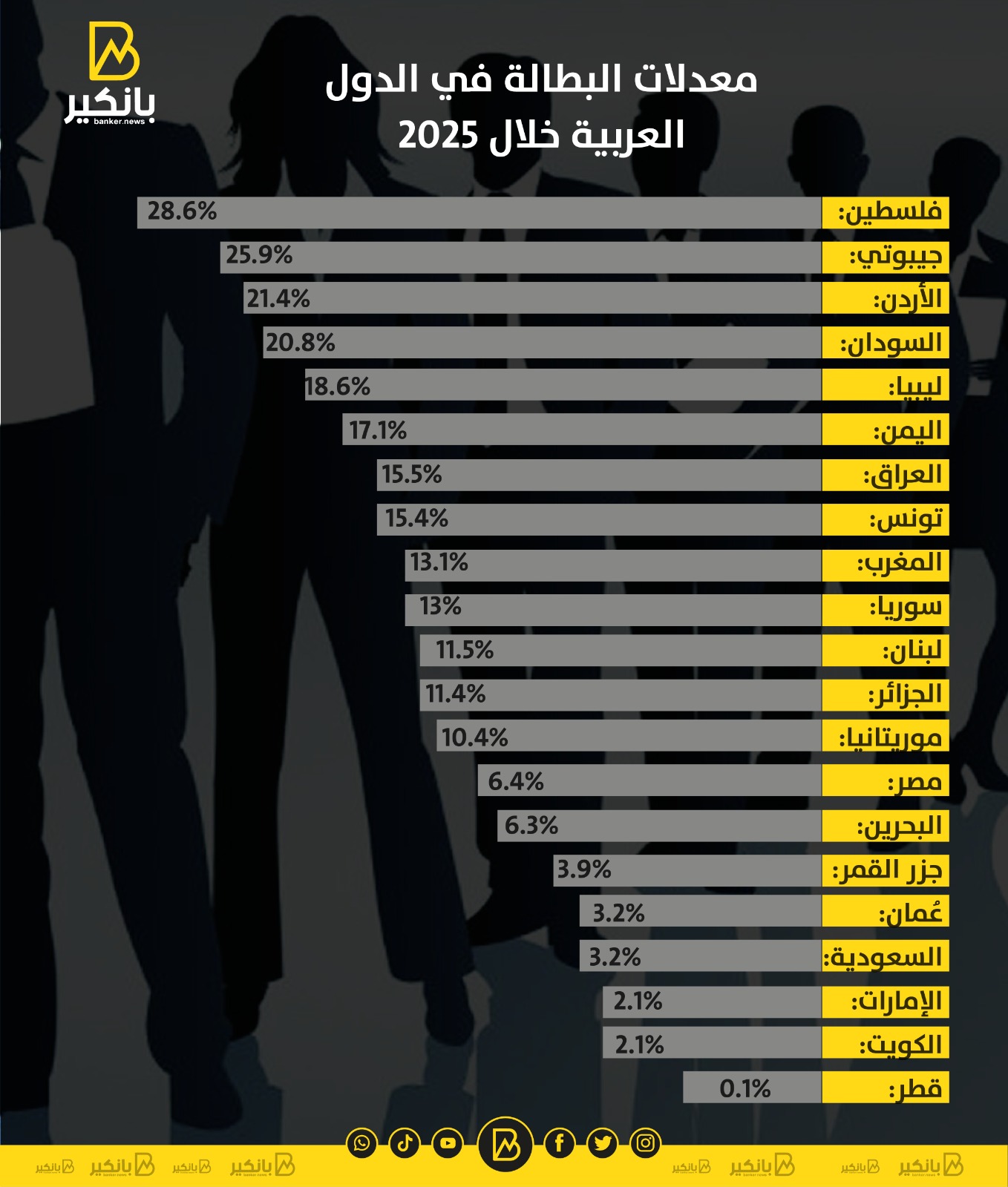 معدلات البطالة في الدول العربية خلال 2025 | إنفوجراف