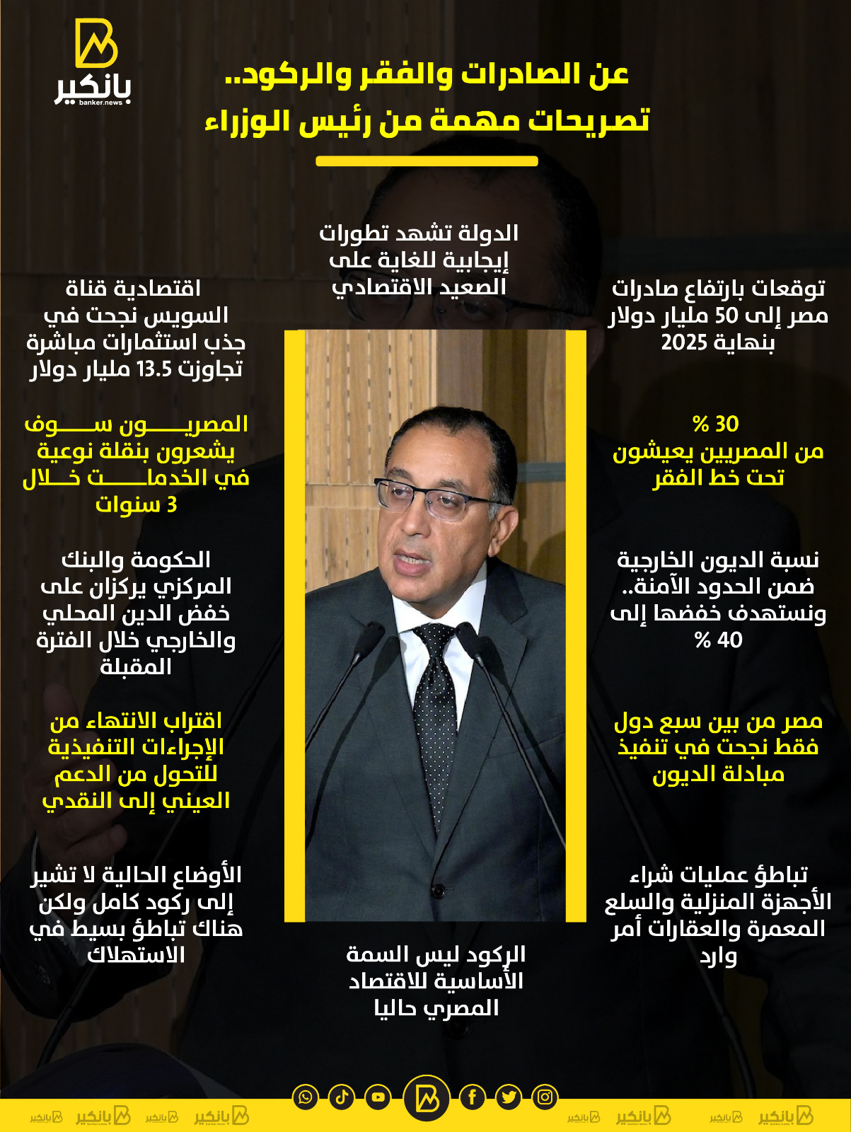 الصادرات والفقر والركود.. أبرز تصريحات رئيس الوزراء خلال المؤتمر الصحفي للحكومة |إنفوجراف