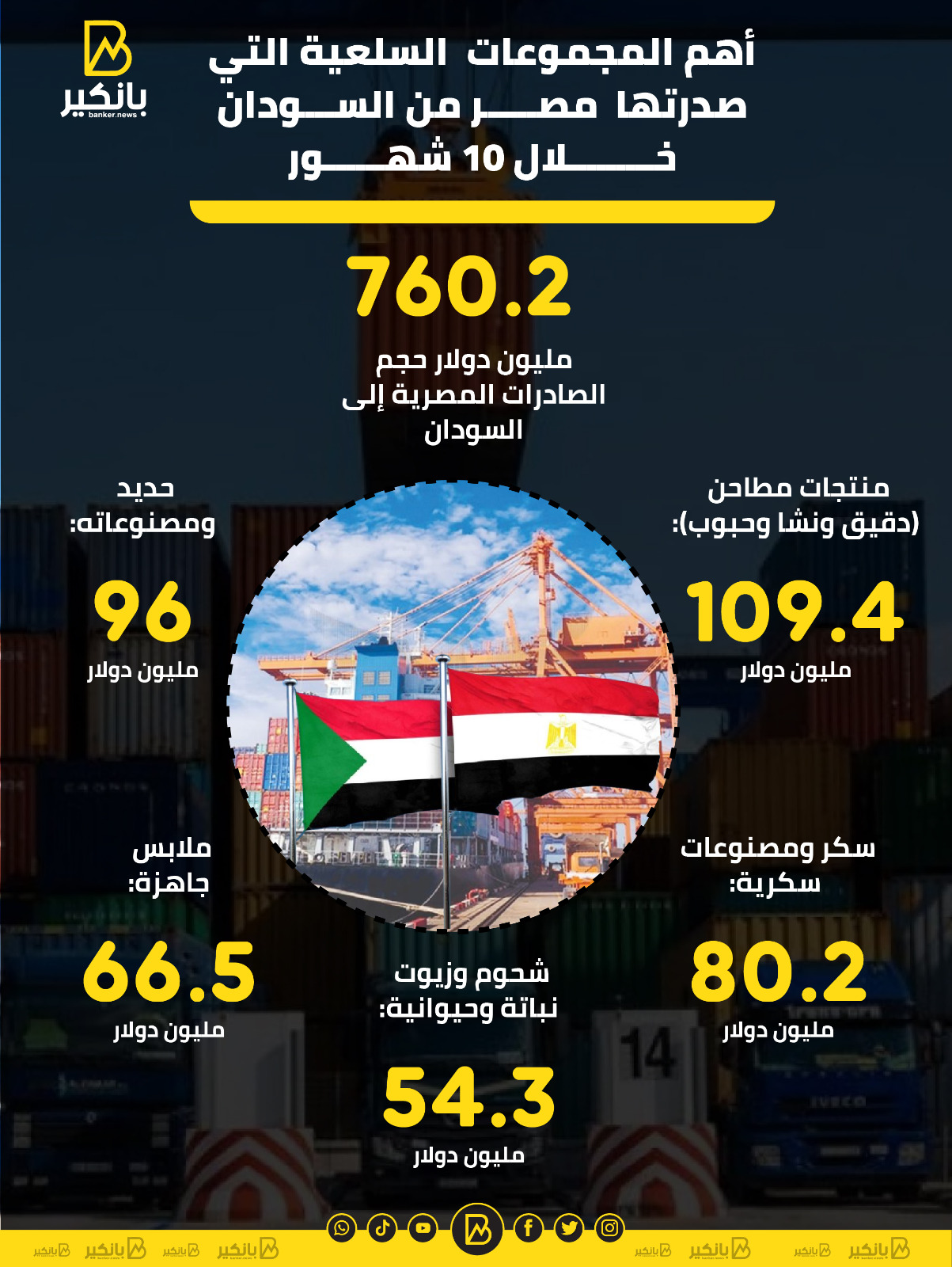 أهم المجموعات السلعية التي صدرتها مصر إلى السودان خلال أخر 10 شهور|إنفوجراف