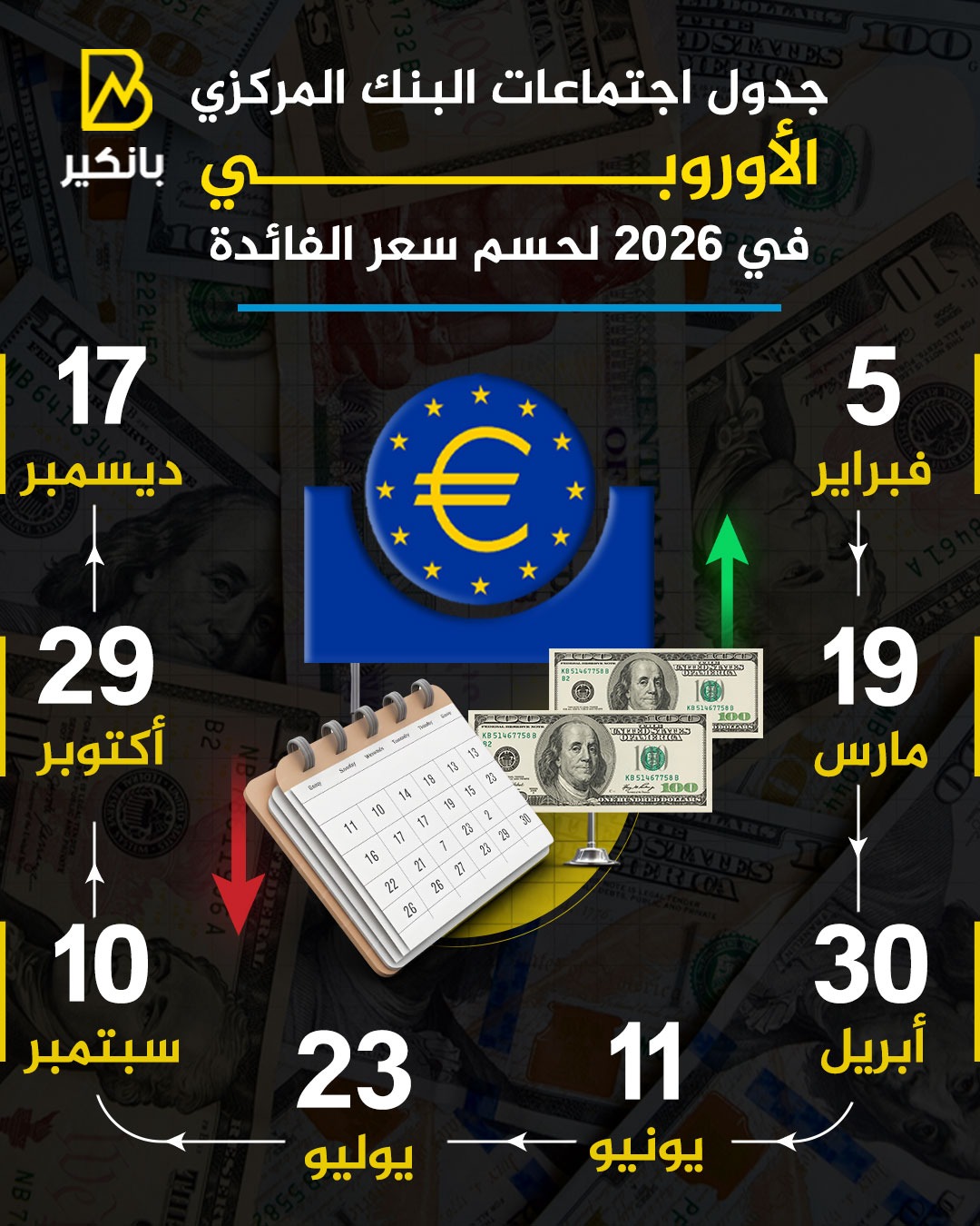 جدول اجتماعات البنك المركزي الأوروبي في 2026 لحسم سعر الفائدة | إنفوجراف