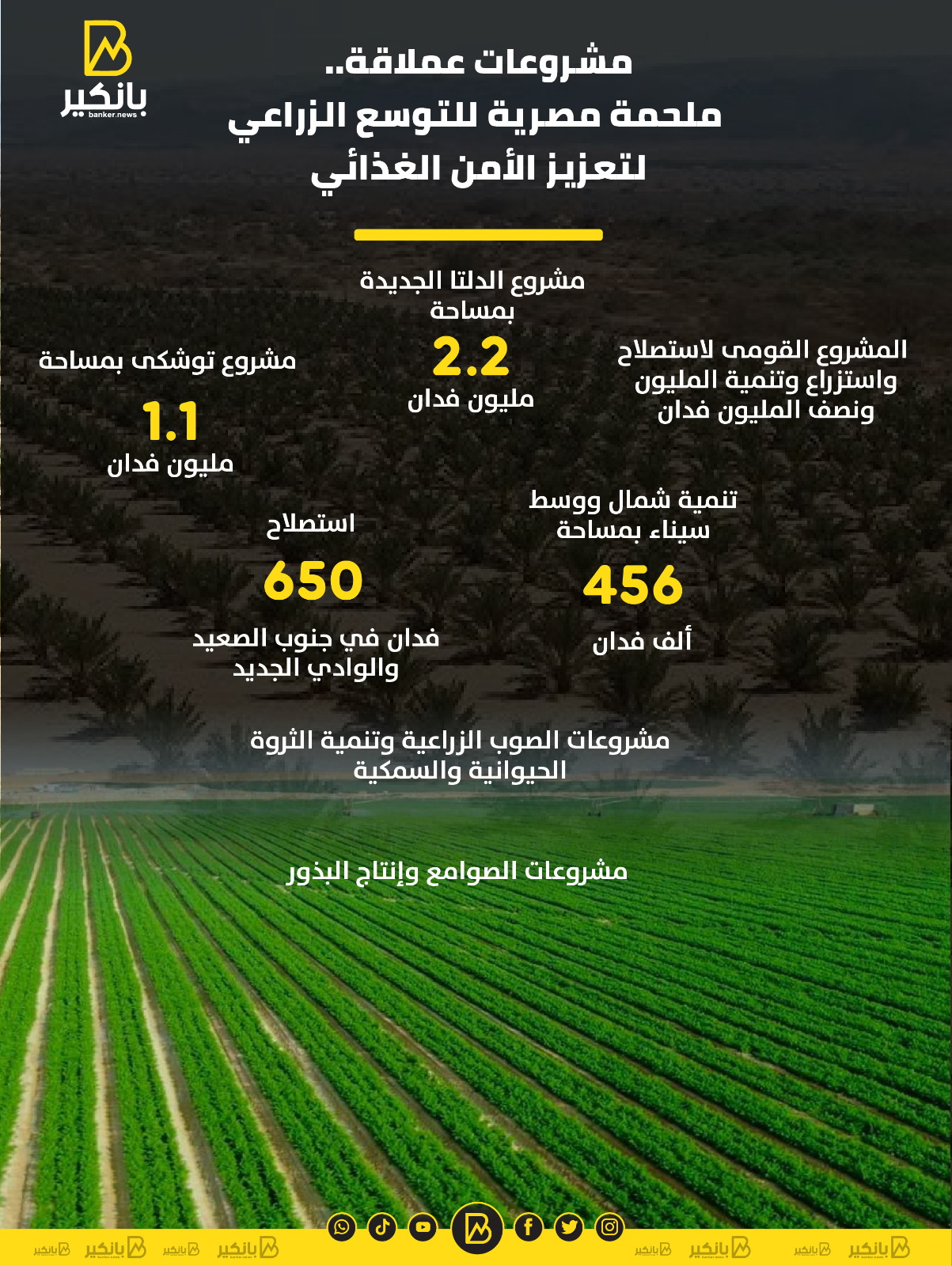 • المشروع القومى لاستصلاح واستزراع وتنمية المليون ونصف المليون فدان