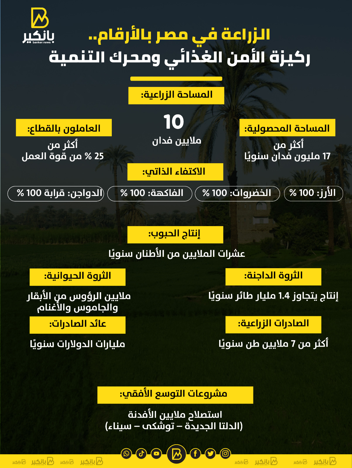 • المساحة الزراعية: نحو 10 ملايين فدان