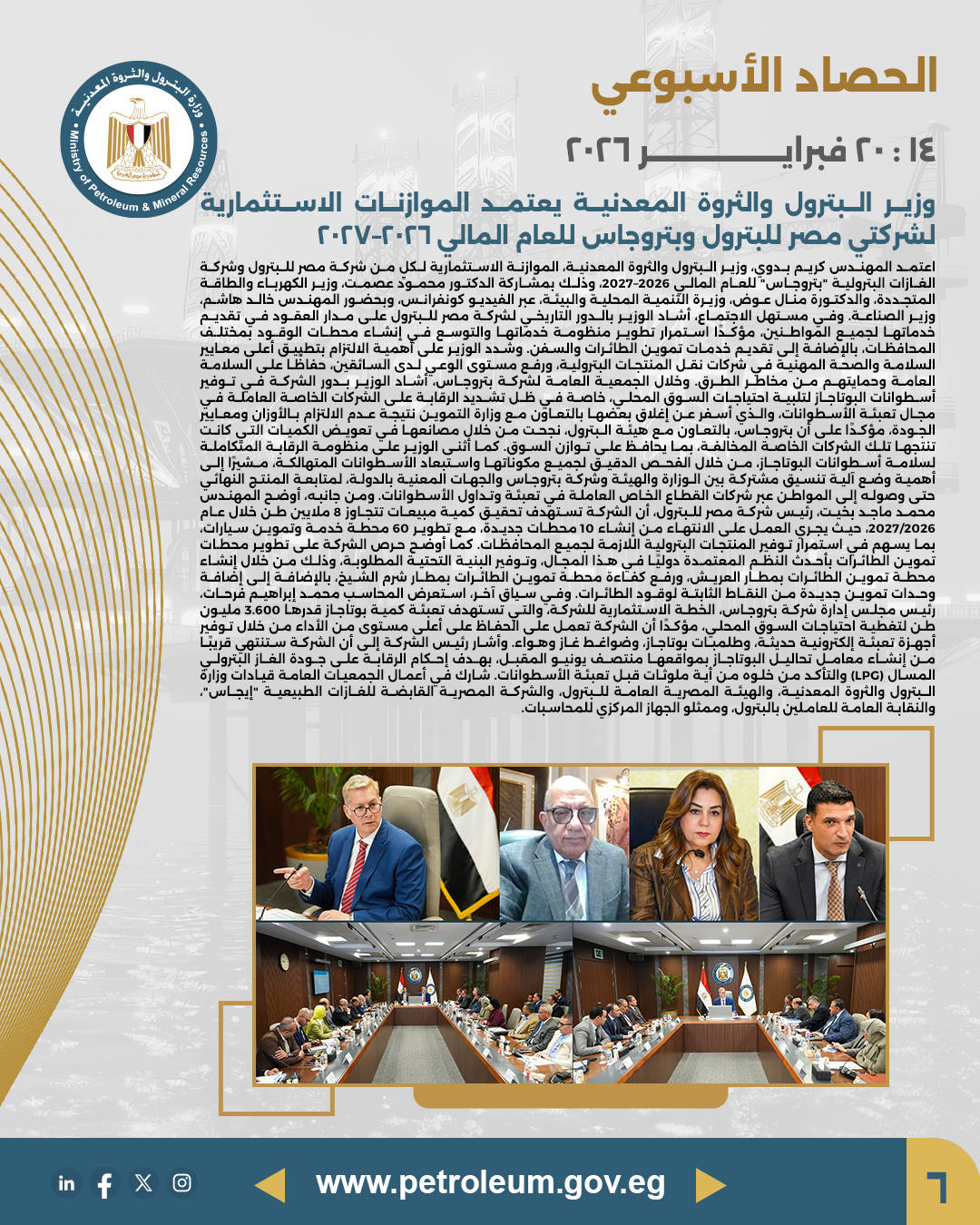 الحصاد الأسبوعي لوزارة البترول يسلط الضوء على التطورات والمشروعات الجديدة